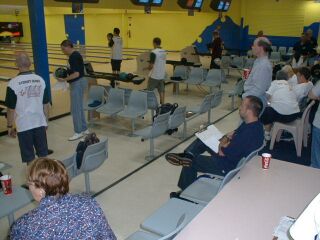 シングルス戦の準決勝は1レーンに1人で3ゲームなので、すぐに終わりそう。